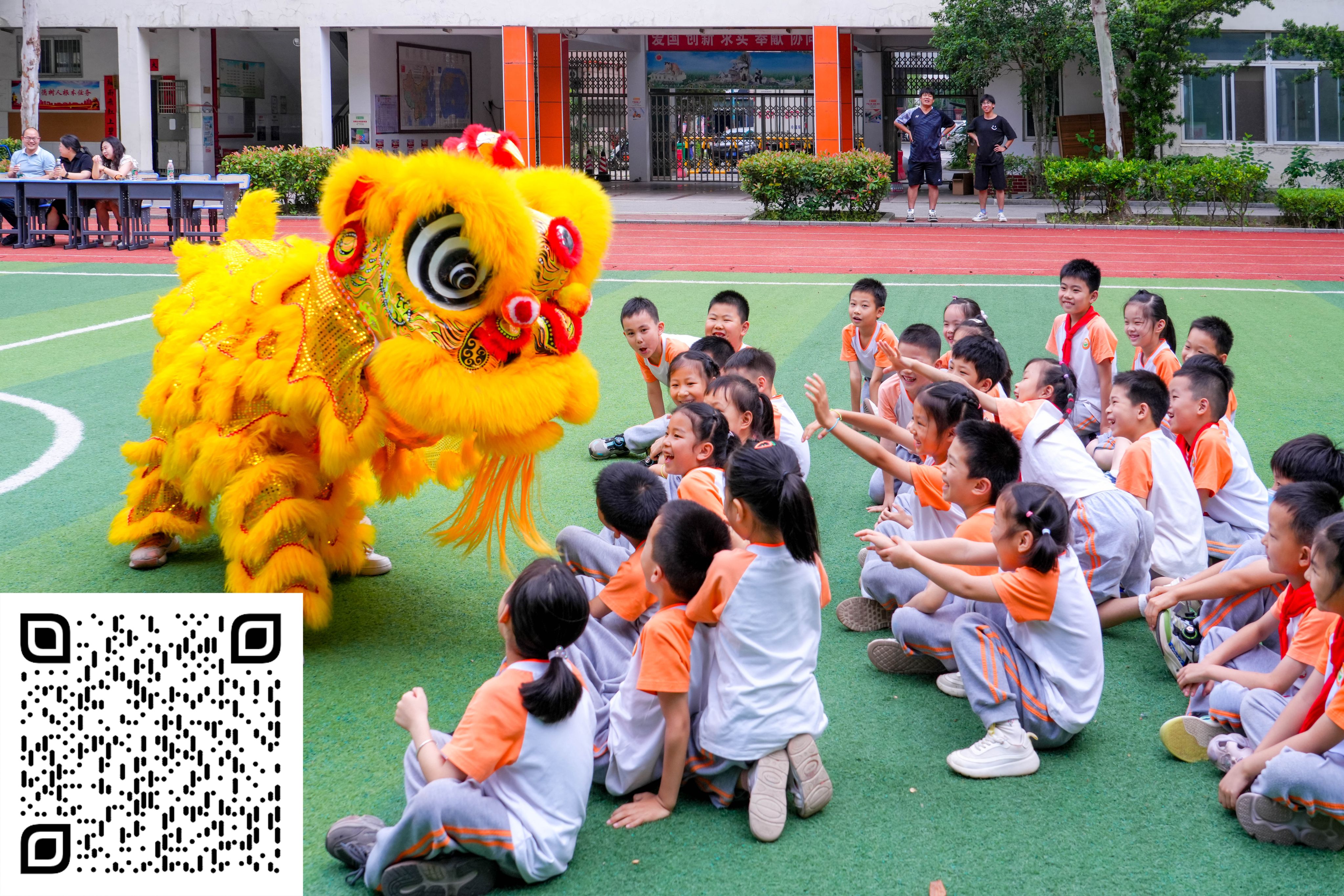 擂鼓响,乐声起,活灵活现的“小龙”和英姿飒爽的醒狮随之闪转腾挪、跳跃穿梭,龙狮道具下,一群脸庞稚嫩的小朋友正在舞动。5月28日,时值端午节前夕,武汉生物工程学院体育学院龙狮队来到钱学森学校,开展了一场别开生面的“我是小龙人”龙狮文化传承活动。