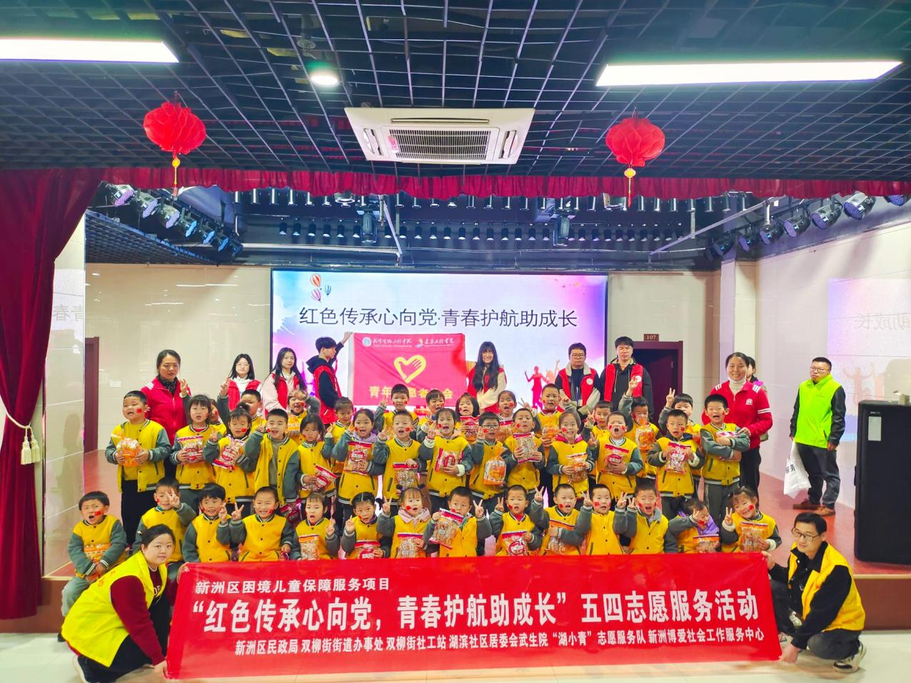 本网讯(通讯员 史钰荣)4月25日上午,在新洲区民政局的指导下,我校建筑工程学院青年志愿者协会联合新洲博爱社工困境儿童项目组、新洲区青春飞扬志愿服务中心、新洲区双柳街社工站、新洲区双柳街中心幼儿园、新洲区双柳街湖滨社区居委会,在新洲区双柳街湖滨社区开展“红色传承心向党,青春护航助成长”五四青年节系列活动。