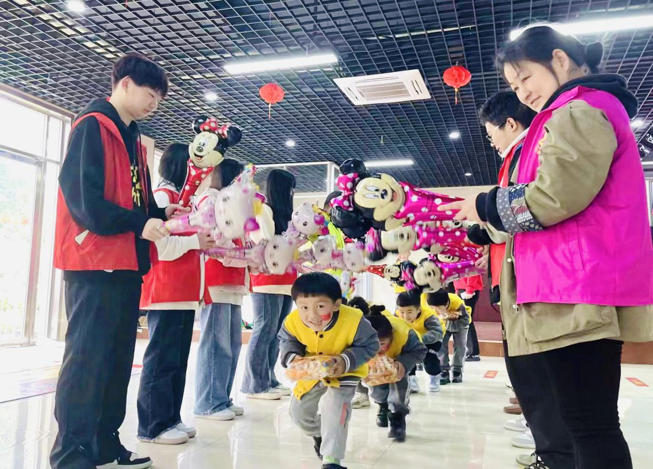 志愿者带领小朋友开展游戏“枪林弹雨送物资”