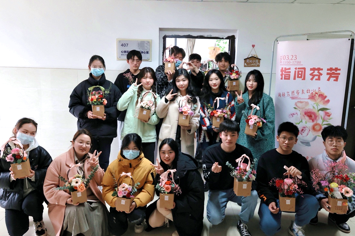 本网讯(通讯员 陈欣悦)3月23日下午,建筑工程学院阳光小筑·心理辅导站在建筑大楼心理活动开展了“指间芬芳”花艺减压心理团体辅导活动,团体辅导分为静心冥想、知识科普、花艺体验和活动分享四个环节,20名师生代表参与体验,舒缓压力。