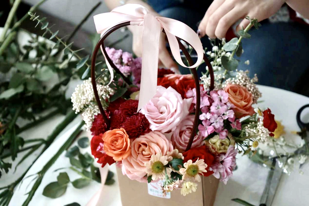 活动现场气氛温馨融洽,体验者们跟随李老师的讲解都挑选了自己喜爱的鲜花,认真修剪搭配。“我挑选了4种暖色调的玫瑰作为主花,旁边搭配了三种颜色淡雅的小雏菊,还点缀了一些小米花、薰衣草、洋甘菊和尤加利叶。”2020级工程造价专科2班学生肖芯蕊精心挑选搭配,将自己的“小花篮”装扮得十分饱满。“我希望每个女孩如同这个花篮一般,未来的日子都充满爱和幸福。”