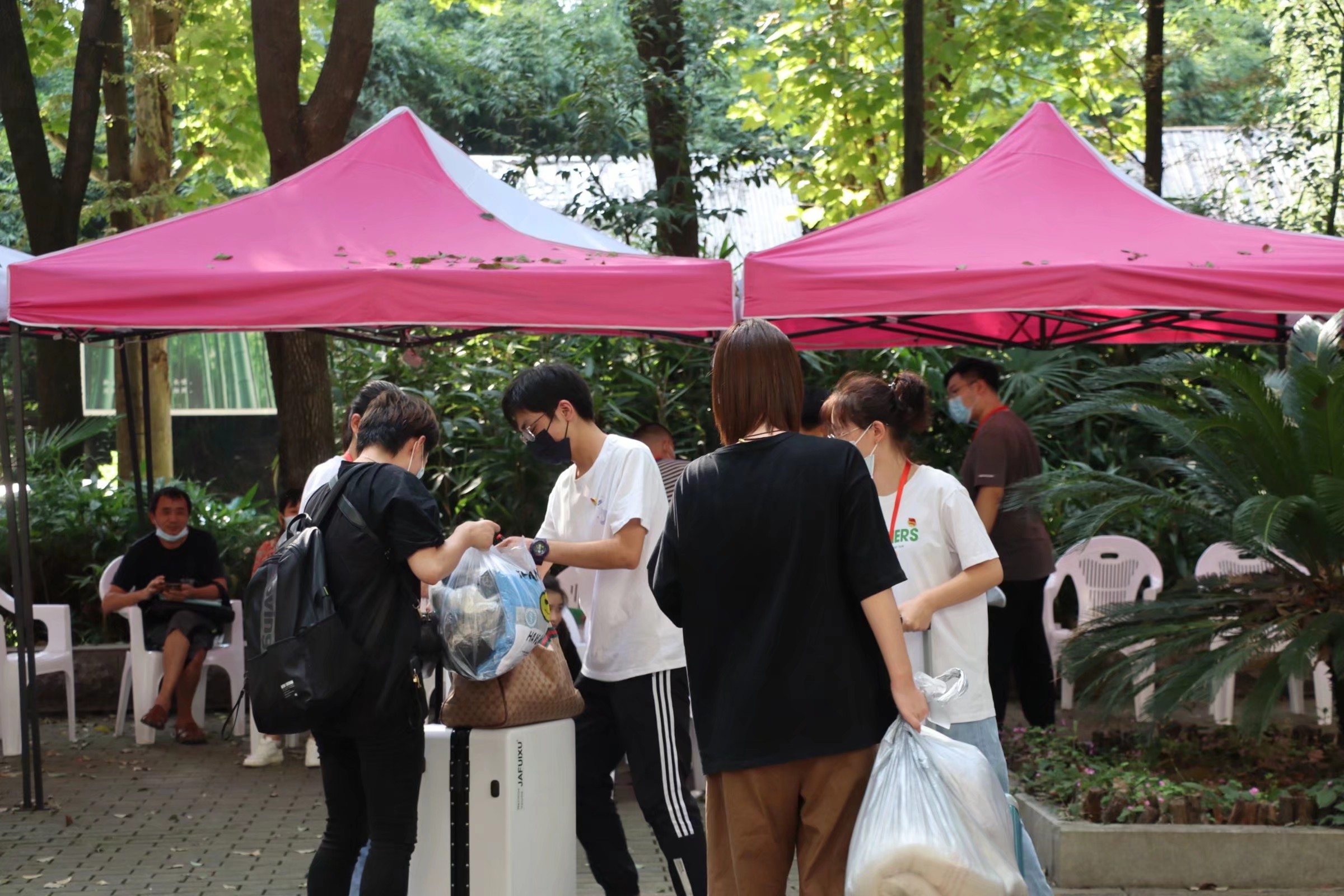 图为学生党员帮助新生搬行李
