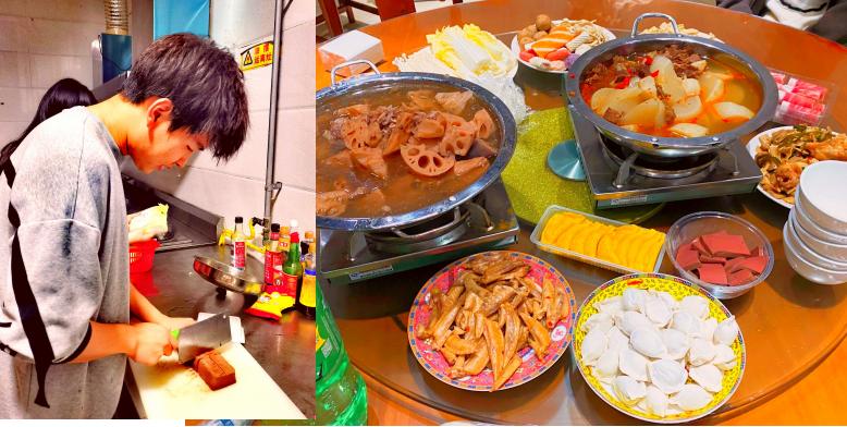 图为同学们自己动手制作“火锅宴”