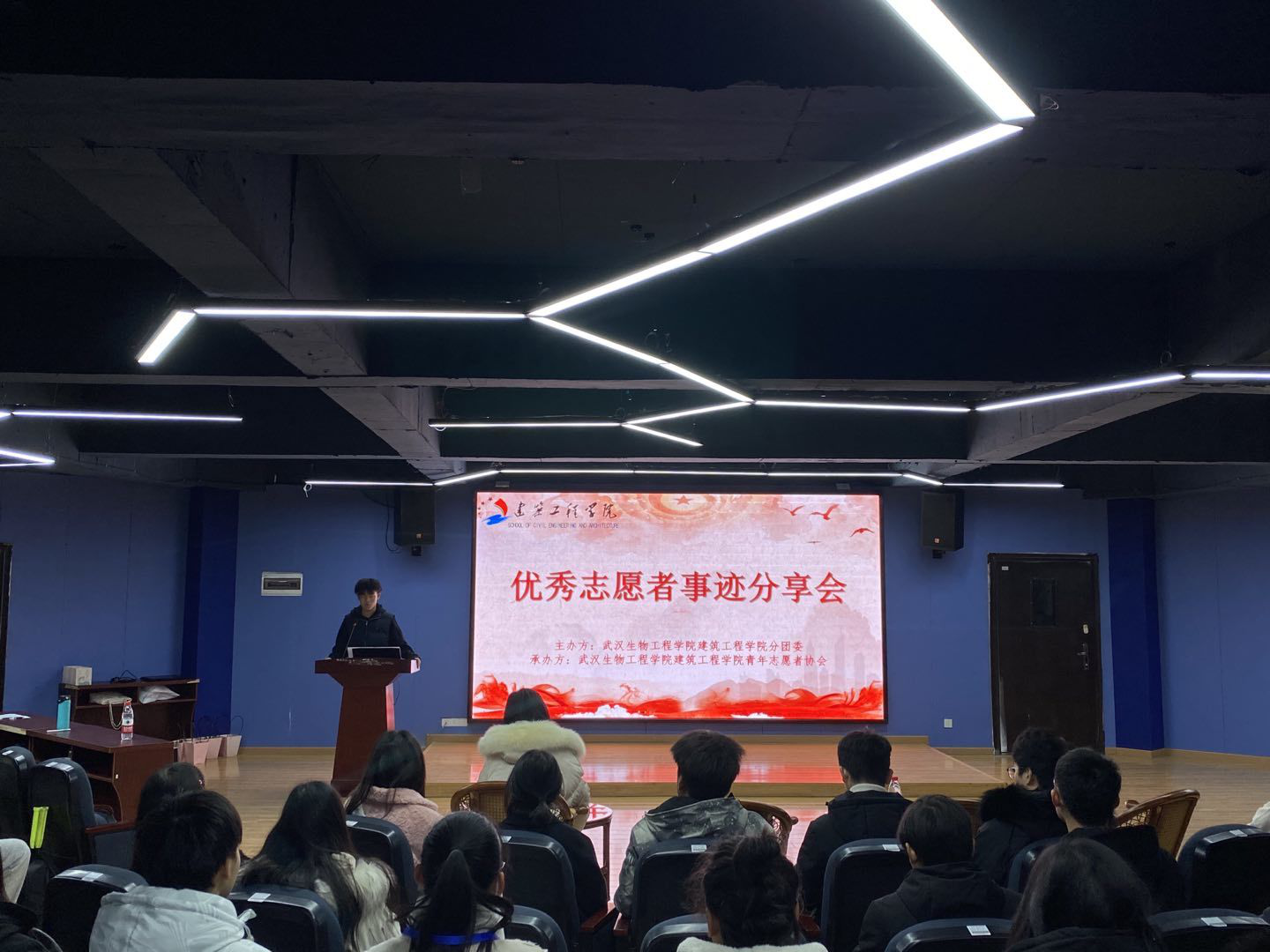 本网讯(通讯员 曹裳)12月4日中午,建筑工程学院分团委在15307多功能报告厅举办“筑美学堂”系列活动之“守初心志愿相伴,担使命砥砺前行”优秀志愿者事迹分享会。活动邀请了校青协、园林园艺学院、管理学院·文学院、生命科学与技术学院、艺术与设计学院、外国语学院青协志愿者代表参加。