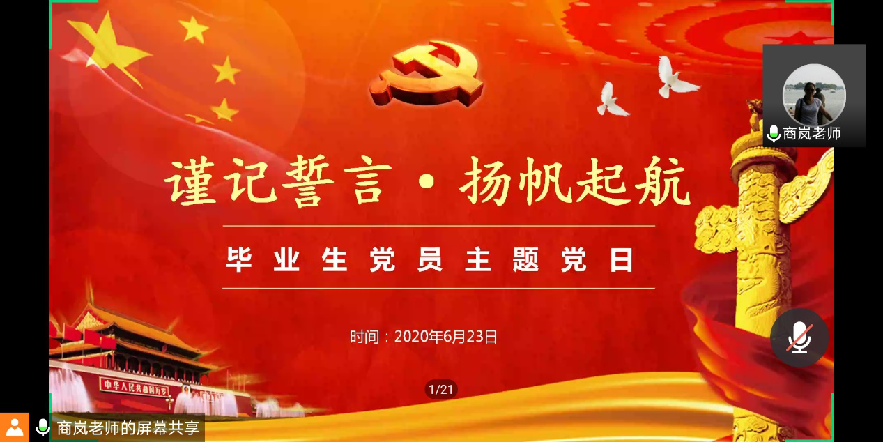 本网讯(通讯员 李美琪 陈冉)6月23日19:00,建筑工程学院在腾讯会议平台线上开展以“谨记誓言,扬帆起航”为主题的2020届毕业生党员党日活动。会议由组织员商岚主持,60名2020届毕业生党员共同参与。