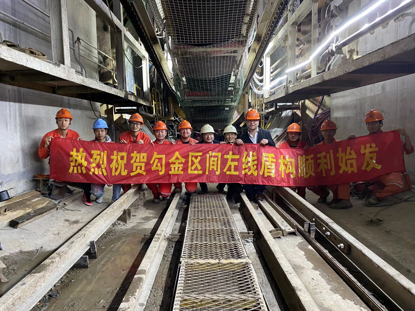 图为第四届“隧道工程特色班”学生与参与始发的项目管理人员合影