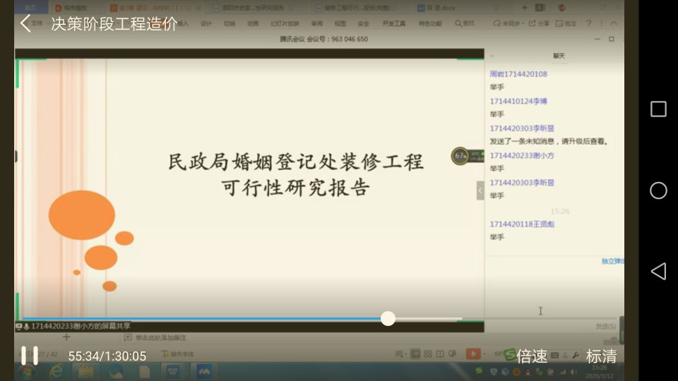本网讯(通讯员 刘宇)3月12日下午,建筑工程学院在腾讯会议平台直播了由毛小敏副教授主讲的《工程造价管理》线上公开课。学校常务副校长顾豪爽,教务处处长董妍玲,副处长刘春侠、韦丽莉,教育教学督导室丁克清、高焕章、刘焰等专家教授和学院260余师生参加学习互动。