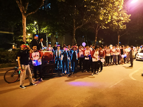 筑美广场、北园二舍、北园十舍、江南水乡学生公寓群、雄关······一路上荧光闪烁,师生每奔跑至宿舍楼下,便驻足对楼高呼“走下网络 亲近你我 走出宿舍 拥抱生活”的呼吁口号,邀请更多学生参与夜跑活动。