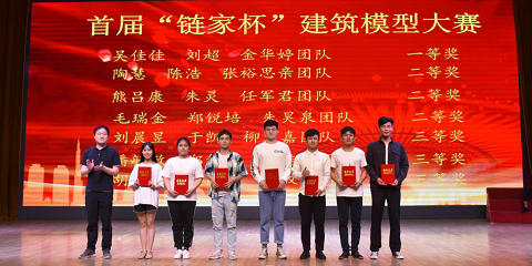 图为刘怿凡为建筑模型创意设计大赛获奖团队颁奖