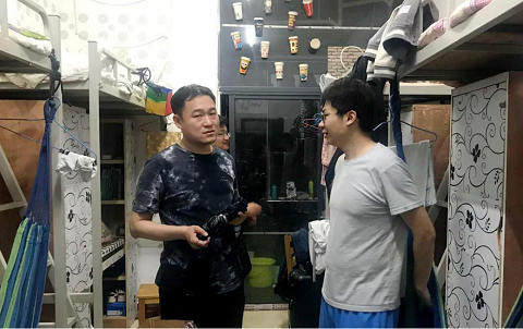 图为学院院长刘怿凡深入学生寝室看望慰问返校毕业生
