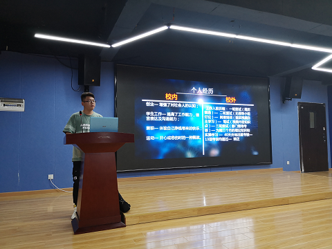 图为胡威做“求职与实习经验”分享