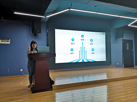 图为李胜男做“实习与国外大学申请经验”分享