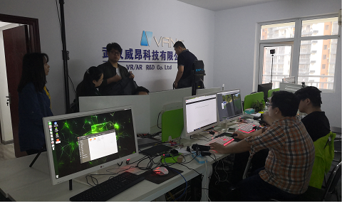 在参观调研过程中,校友梁潇及其团队为师生演示了3DMAX等软件的操作,并耐心细致解答了学生提出的技术问题。