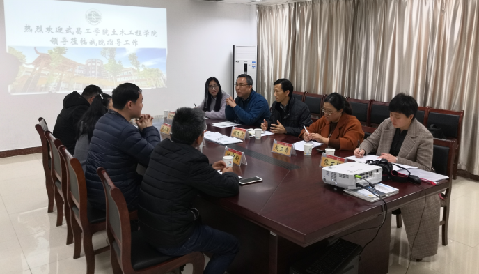 本网讯(通讯员 谢智铨)11月15日下午14:30武昌工学院土木工程学院院长胡其志、土木工程学院党总支书记许力强、党总支副书记胡小红、土木工程学院工程管理专业教师付明琴来我校进行考察。我校建筑工程学院院长刘怿凡、建筑工程学院副院长毛小敏、副院长阮中尉、建筑工程学院分团委书记夏迁陪同考察。