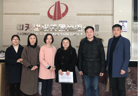 图为建筑工程学院领导中天建设集团有限公司第六建设公司负责人合影留念