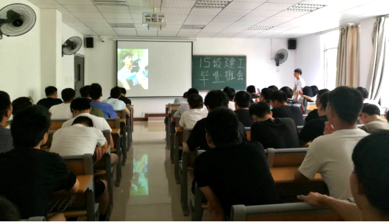 毕业生主题班会由各班辅导员负责。在工程造价专业的班会现场,辅导员吴凯老师以“毕业不散场,青春勇向前”为题对毕业生进行毕业教育和离校安全教育,他先与毕业生共同回忆了大学时光,对同学们取得了成绩表示了认可,他开启了学生离校前写好的心愿瓶,寄语学生要牢记青春梦想,牢记9条班规,做一个对社会有用的人。