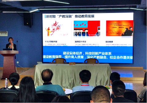 图为建筑工程学院副院长毛小敏介绍该院校企合作育人成果