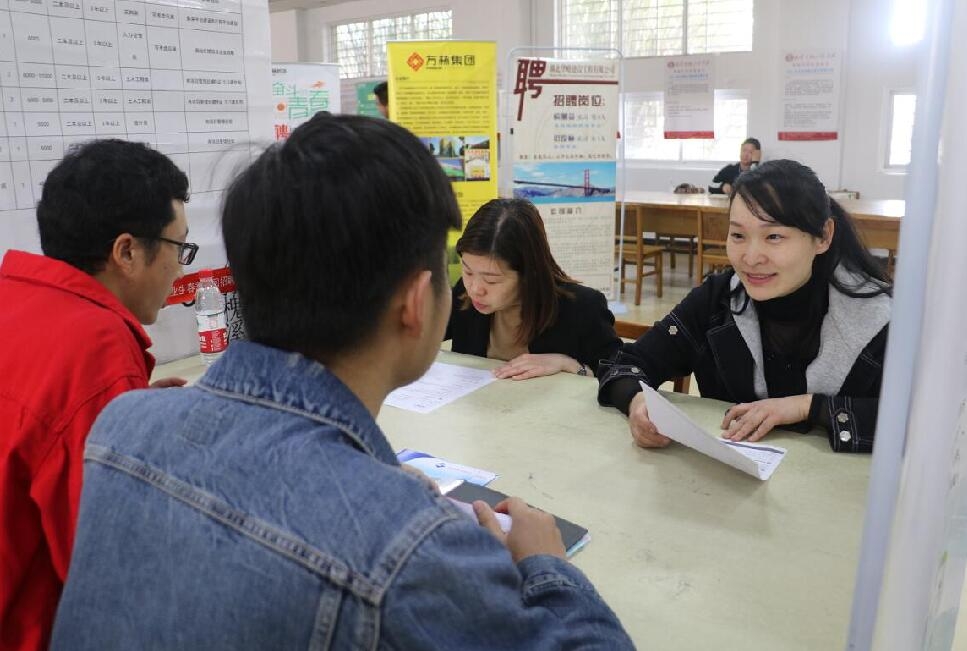图为招聘企业现场面试