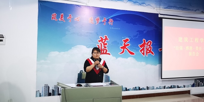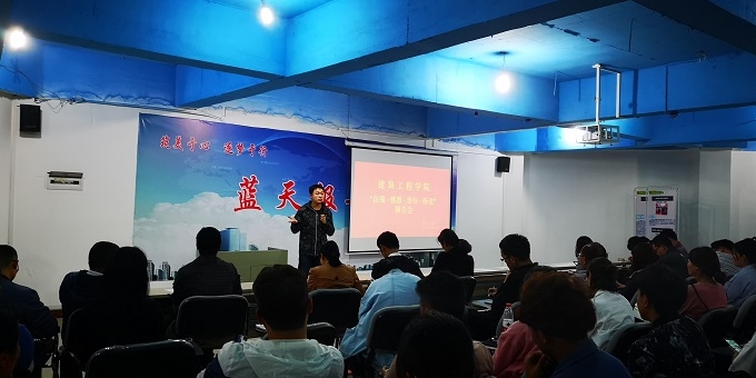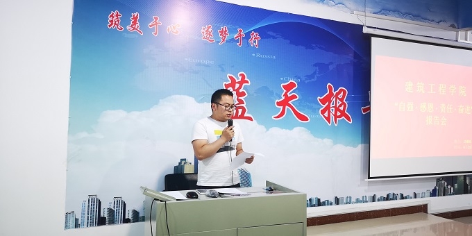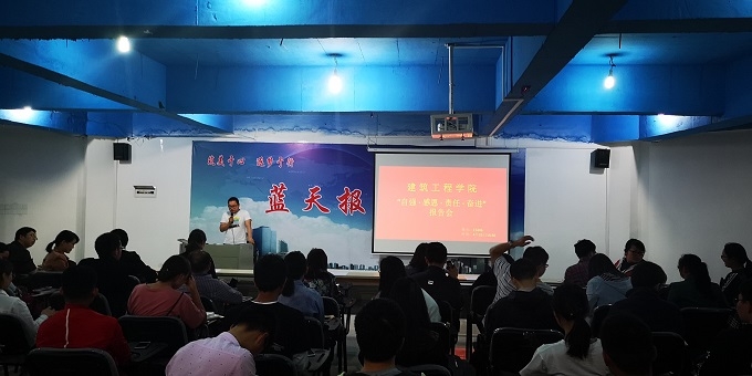 本网讯(通讯员 吴凯)2018年4月25日下午14:30,建筑工程学院在建筑大楼蓝天报告厅召开“自强·感恩·责任·奋进”报告会,学院全体教职工和2017-2018学年国家助学金获得者参加会议。分团委书记夏迁主持会议。