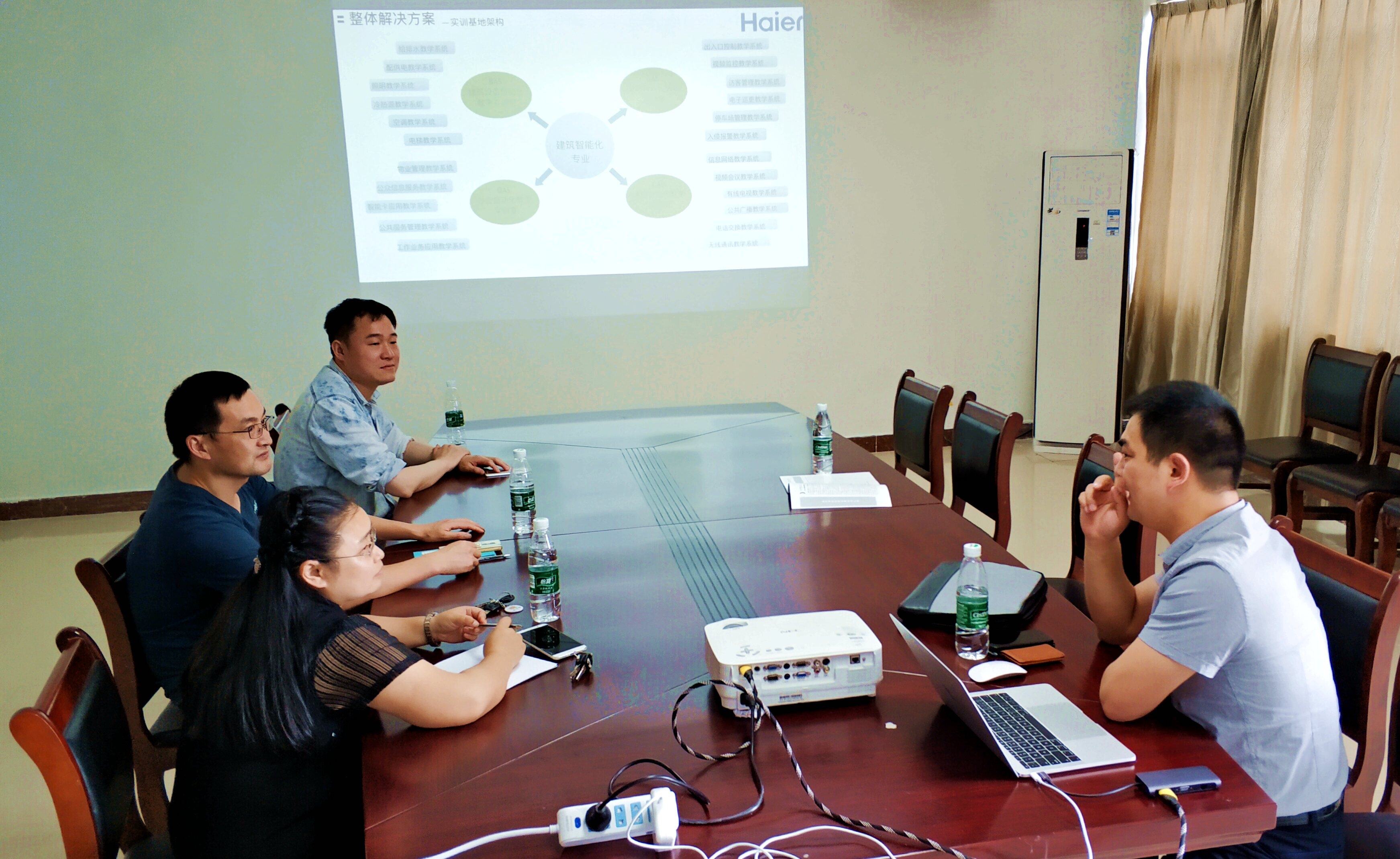 本网讯(通讯员 吴凯)5月9日,海尔集团校企运营总监陈丰、智慧教育湖北运营总监李家国来我校建筑工程学院参观考察,围绕共建建筑电气与智能化专业开展了校企合作洽谈,并签订了校企合作协议。建筑学院院长刘怿凡、副院长毛小敏参加洽谈会并做接待。