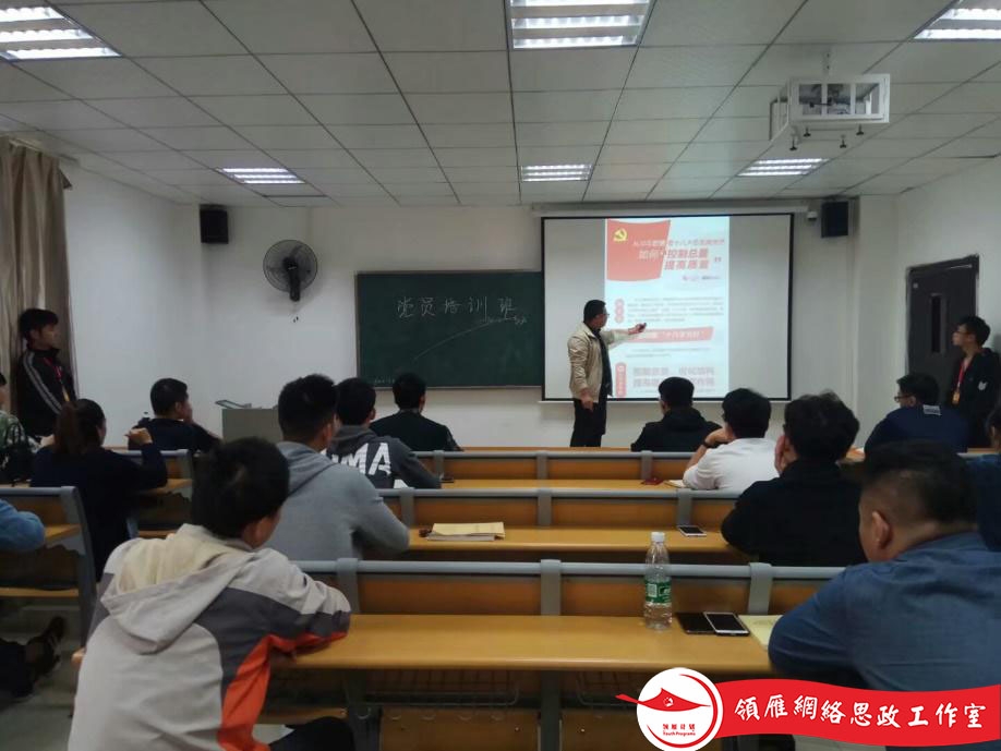 课上,授课人吴凯由对“质量”二字含义的解释引出授课主题“质量是发展党员的生命线”。学生党员、预备党员拿着笔在笔记本上的记录着老师讲的内容。“我们要做‘讲政治,有信念、讲规矩,有纪律、讲道德,有品德、讲奉献,有作为’的优秀党员”吴凯在课上讲到,赢得听课学生一致认同的掌声。