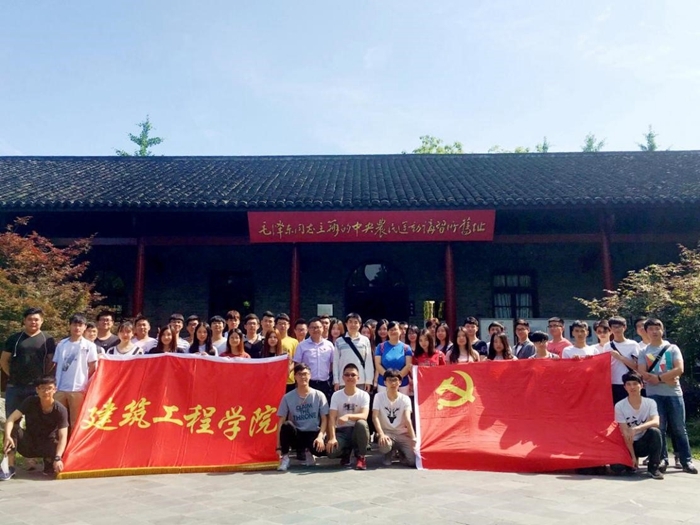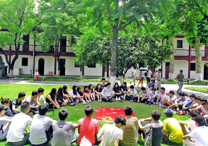 参观过后,师生围在一起坐在中国共产党第五次全国大会会址前草坪上探讨“中国革命发展,畅谈中国梦”,建筑工程学院2015级学生党支部书记王辉给在场师生简述了中共五大召开的历史背景,并要求学生党员要牢记历史,提高党性,踏实努力。随后同学们互相交流学习心得,纷纷谈感受。