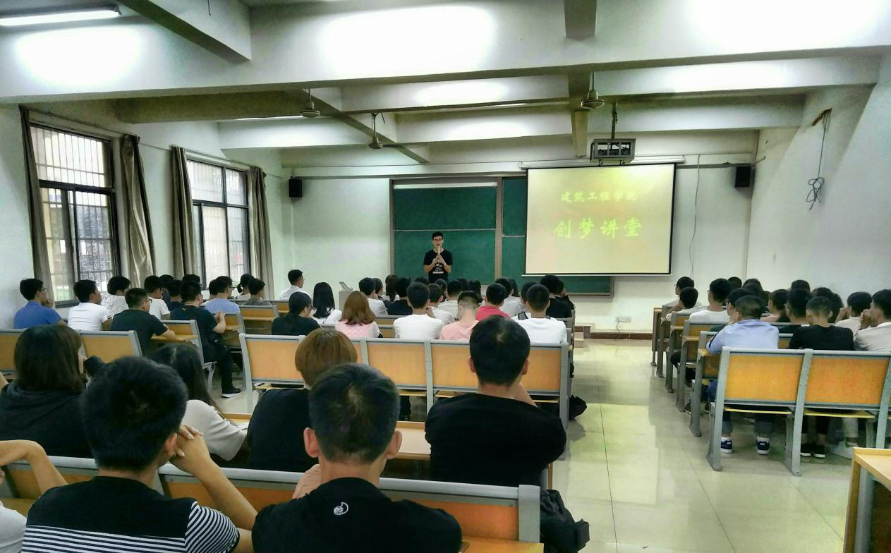 本网讯(通讯员 吴凯 大学生记者团 潘绎丞)9月5日下午,建筑工程学院优秀毕业生——中南财经政法大学在读研究生肖德恒返校为2017级新生开展《创梦讲堂》,作励志报告,以自己的实际经验引导新生适应大学生活,做好大学规划。