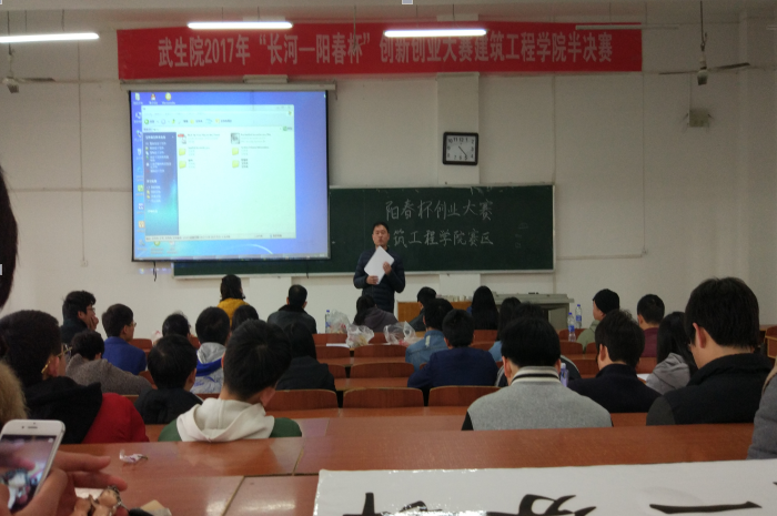 本网讯(通讯员 聂子维)3月20日下午2:30,武汉生物工程学院第二届“长河-阳春杯”创新创业大赛建筑工程学院赛区半决赛在九号楼骇浪厅举行。出席本次比赛的评委有机电学院副院长严小黑、园林系副系主任张思、机电学院创业导师周佑喜、建筑工程学院院长刘怿凡、副院长毛小敏、建筑工程学院辅导员席亚健,吴凯。