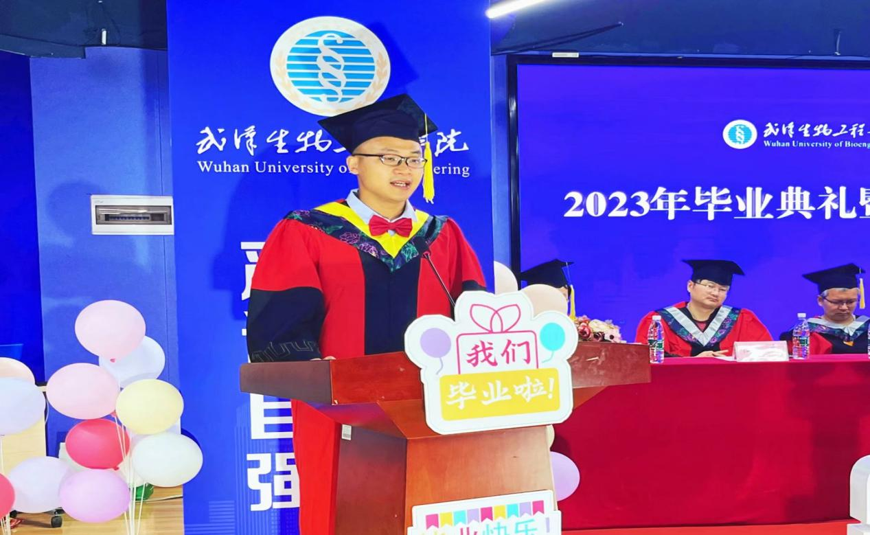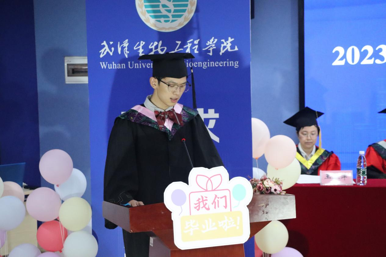 2023届优秀毕业生杨全洲作为毕业生代表发言,他说:“我们应如梅、兰、竹、菊一样,有兰花的宁静致远,菊花的洁身自好,竹子的坚韧不拔,梅花的傲骨不折,保持这样的品格回报母校给予的恩情,才能对得起这四年来母校花费的心血。”