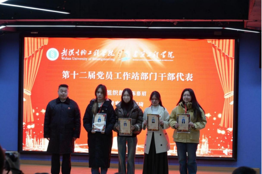 各党支部书记为第十二届党员工作站学生干部颁发《学生干部证明》