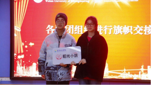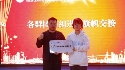 宋耀辰向罗茏焱移交大学生职业发展协会牌匾