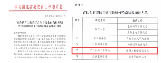 本网讯(通讯员 商皓阳)12月1日,湖北省委教育工委发布《省委教育工委关于公布首批全省高校基层党建示范创建工作验收通过名单的通知》(鄂教工委函〔2023〕23号),建筑工程学院党总支通过首批全省高校党建工作标杆院系验收。