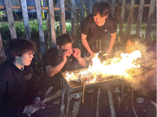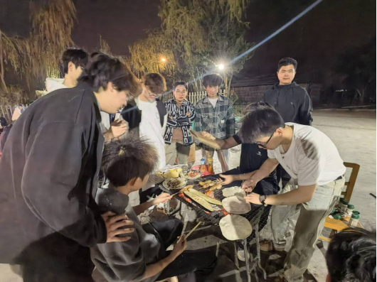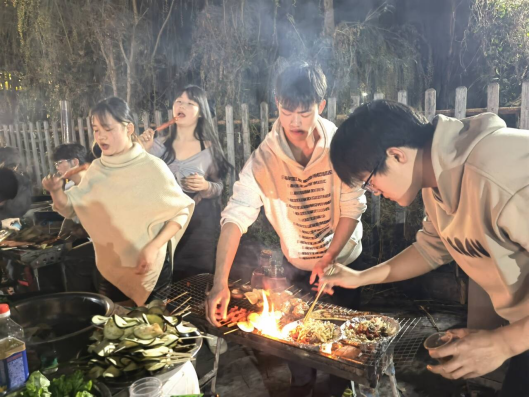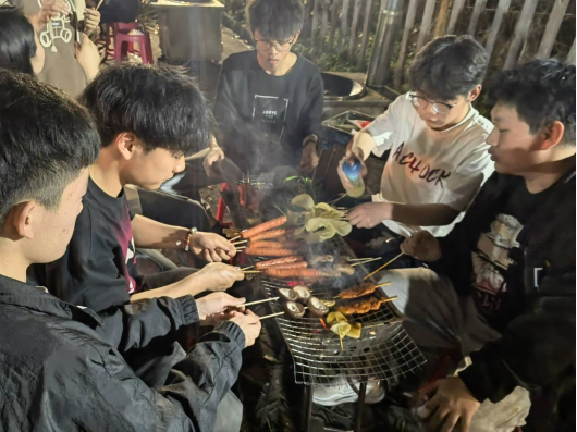本网讯(通讯员 卫文进)“共同、共谋、共创、共享、共乐。”3月22日晚18:30,建筑工程学院23级建筑工程技术专业师生篝火联欢晚会在学校智汇场晒秋田园广场举行。师生围坐篝火,纵情歌唱,一同动手制作烧烤,在欢声笑语中畅谈青春趣事,共谋大学规划。