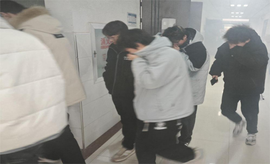 此次消防应急演练中,分为协调组、疏散组等6个工作小组,演练内容主要包括疏散演习、灭火器使用、消防栓使用及事故现场的协调和指挥等。14点20分,实验中心主任赵雄辉宣布演练开始,随着浓烟的火灾提醒,在疏散组老师的指导下,全体学生捂着口鼻,猫腰靠墙或扶着扶手迅速撤离,按照规定的疏散路线,快速、有序地向室外、楼下撤离,到楼下后前往指定地点集合,整个疏散过程用时2分49秒,各个工作小组配合默契、疏散路线清晰、组织协调严谨,确保了疏散过程的有序开展。