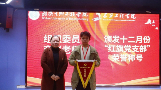 建筑工程学院组织委员商岚为“红旗党支部”颁发流动红旗