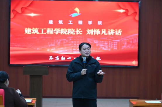 校务委员、建筑工程学院院长刘怿凡在讲话中首先获奖学生取得的成绩给予充分肯定,在建校三十周年的历史时刻,全院师生都是见证者,更是践行者。希望全体同学不断加强思想道德修养,努力学习科学文化知识,在自信自豪、自尊自爱、自立自强等三个方面立志成才,奋发有为,再创佳绩。