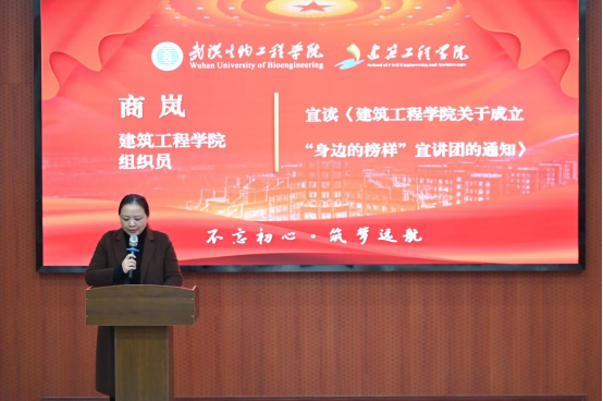 在会上,建筑工程学院组织员商岚老师宣读了《建筑工程学院关于成立“身边的榜样”宣讲团的通知》,由高语婷、张雨露、郭瑾雯、吴弋羲、沈鑫雨、谢美玲、张希一、王奕乔等8名同学组建“身边的榜样”宣讲团第一批成员,号召各班级学习榜样,成为榜样。