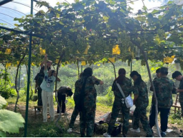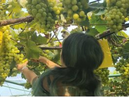 新生们在智汇农场葡萄园采摘阳光玫瑰
