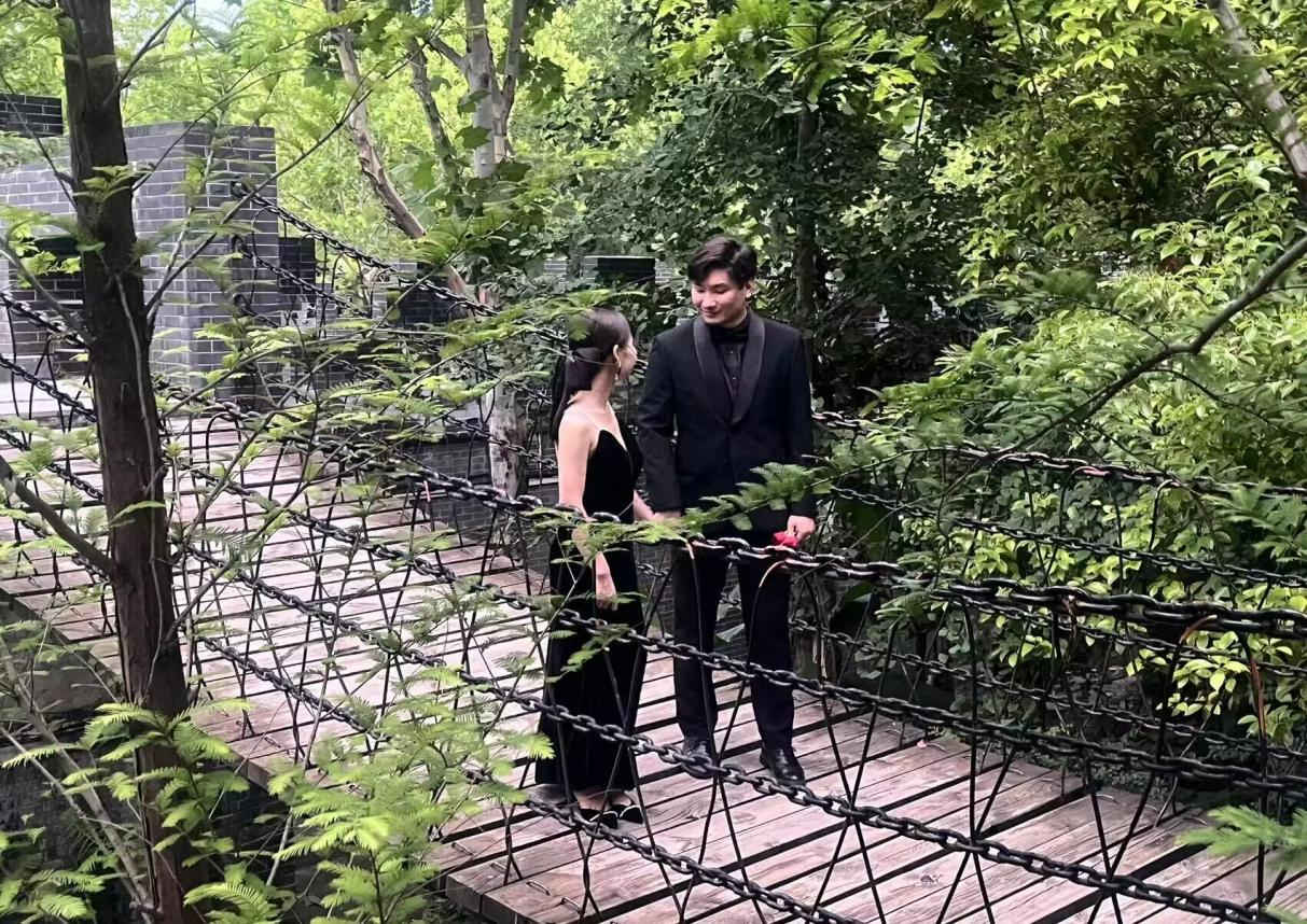 婚纱照的取景地选在了校园内标志性景点和建筑工程学院教学楼内。拍摄的过程吸引了很多学弟学妹以及老师的目光,两位新人重走爱情长跑之路,在筑美广场、建筑学院教室、校园长城、晨光湖、林空栈道等地拍摄了婚纱照,在青年志愿者协会的学弟学妹的见证和祝福下记录属于他们的青春回忆。