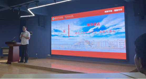 最后,建筑工程学院院长刘怿凡博士发表讲话。他对新生的到来表示热烈欢迎,并介绍了学院的发展历程、师资力量及科研成果,鼓励同学们要勇于担当,敢于创新,将个人梦想融入中国梦,为建筑行业的深度发展贡献青春力量。