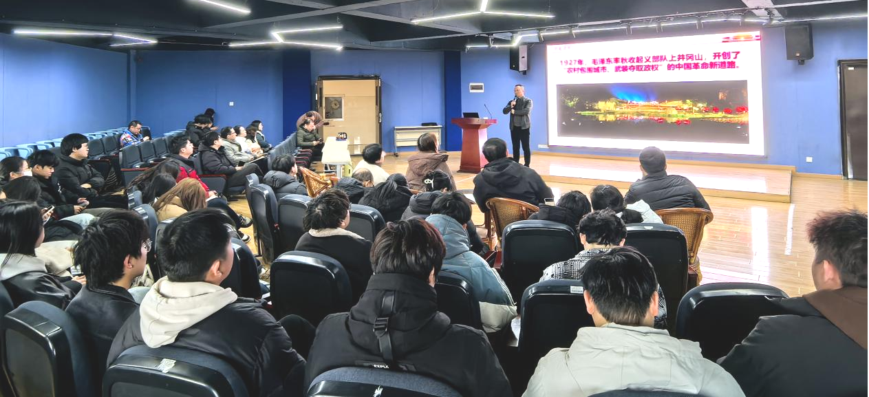 学院党总支书记王龙以《在毛主席诗词中体会毛泽东思想活的灵魂》为题展开读书分享活动