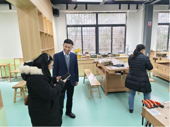 副校长李斌成指导木工实训室预备实验