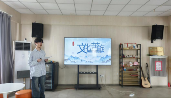 随后,肖天赐同学带领大家翻开《文化苦旅》的篇章,踏上跨越时空的文化寻根之旅。从莫高窟的千年壁画到都江堰的智慧水利,从文人墨客的精神困境到传统文化的传承使命,肖天赐以细腻的讲解,展现余秋雨先生在历史遗迹与现实思索间的深刻叩问。他指出,这本书不仅是地理意义上的游历手记,更是一场对文化灵魂的深度挖掘,启发着同学们思考:在时代浪潮中,青年该如何肩负起守护与传承文化根脉的重任。