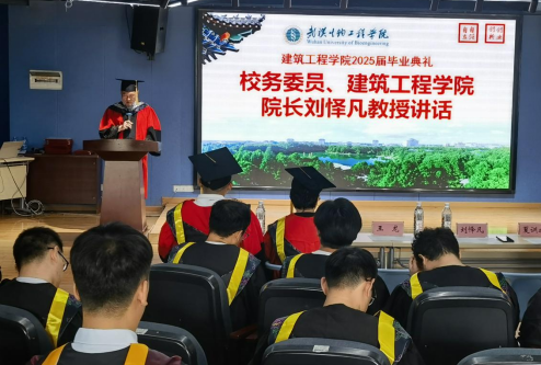 建筑工程学院院长刘怿凡寄语毕业生。他回顾了学院学子取得的种种成绩,介绍了学院近年来的建设与发展,高度肯定了毕业生们的努力。他表示,学院前进的每一步都凝聚着学院学子的青春奋斗和无私奉献,他寄语同学们三颗种子,创新的种子、理想的种子以及思辨的种子。这三颗种子,不仅是对同学们未来人生的指引,更是对学校教育精神的传承与发扬。