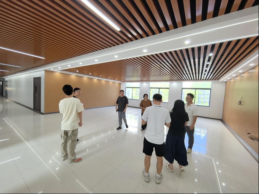 检查组一行先后深入现代木工实训室、大学物理实验室、土木工程实验室、工程造价实验室、建筑设计实验室及力学与结构实验室等重点功能区域,围绕文化建设、环境管理、设施设备、仪器运行、消防配置等核心模块展开全方位检查。在现代木工实训室,检查组重点查看了木工机械的防护装置是否完好、通风除尘系统运行是否正常;在大学物理实验室,针对操作实验台、精密仪器的检修维护进行了逐一核查;土木工程实验室重点排查了新型测绘仪器设备的使用培训情况;工程造价实验室则重点检查了实验室的文化建设方案。