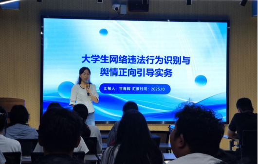 甘老师强调,网络不是法外之地,每位同学都应自觉规范网络言行,她还鼓励学生骨干在网络空间主动发声,引导正向舆论,弘扬正能量,共同营造清朗健康的校园网络环境。