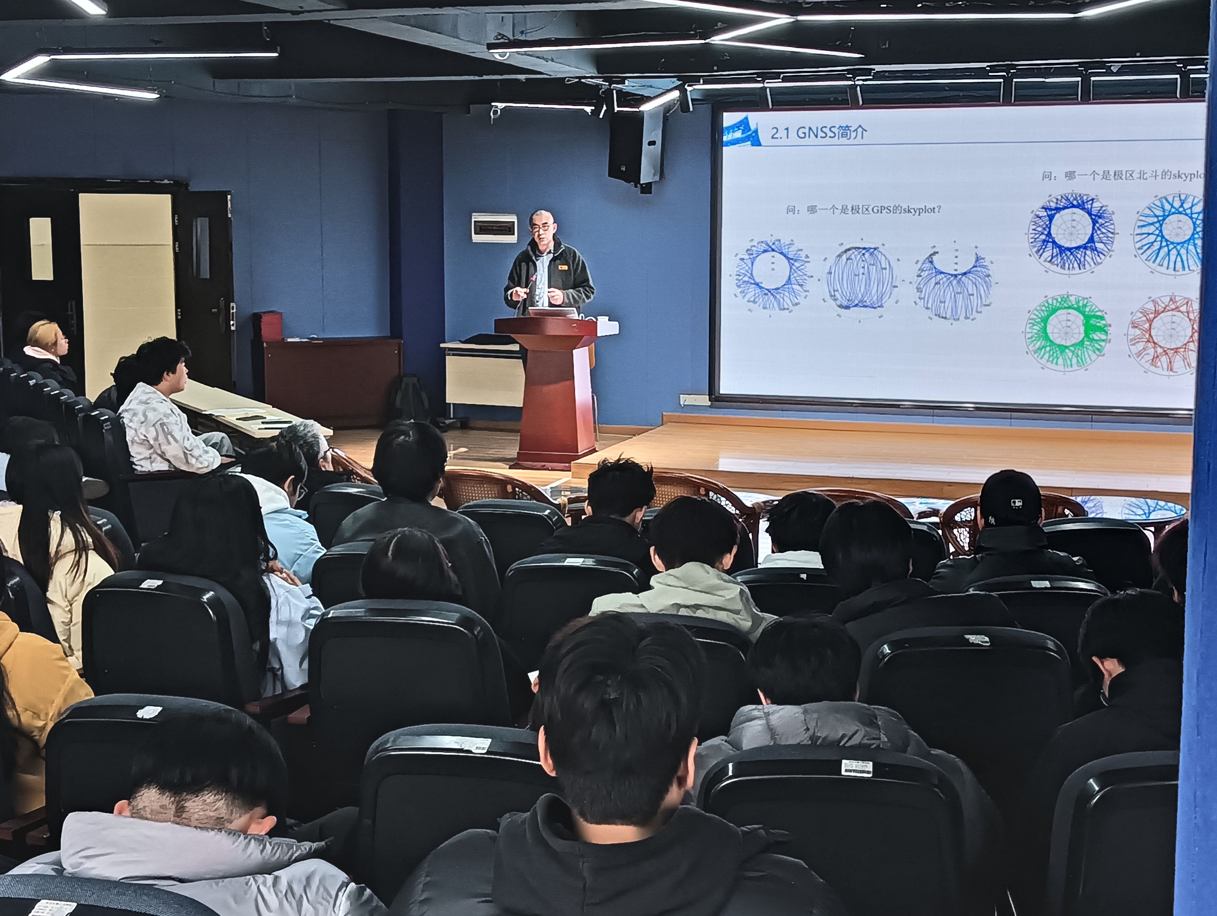 据悉,本场学术讲座主要是围绕南北极的基本认识、北斗/GNSS与时空基准、北斗/GNSS高精度定位、北斗/GNSS在冰冻圈的应用四个方面的基本内容,涉及许多前沿的新型测绘技术与方法。