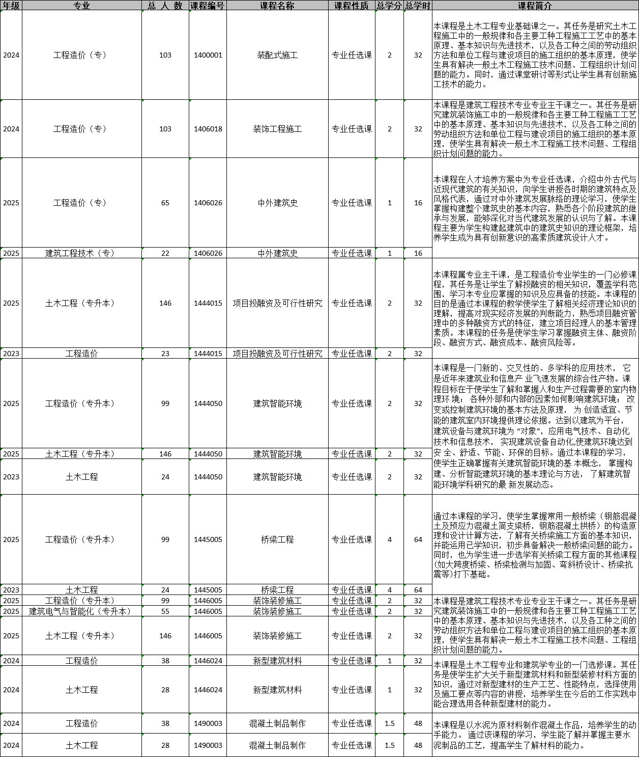建筑工程学院2025-2026-2学期专业任选课课程清单