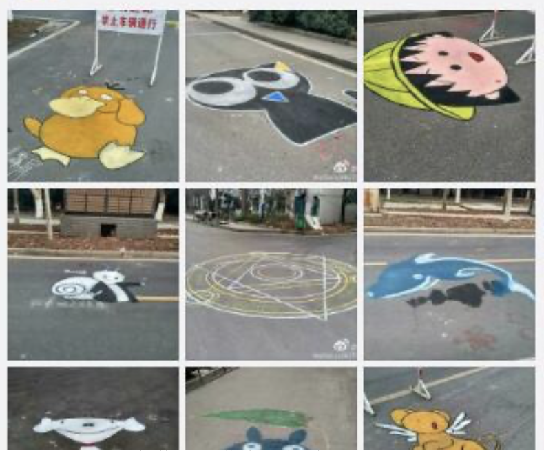图为被网友誉为“最萌校园路”的部分学生测设作品