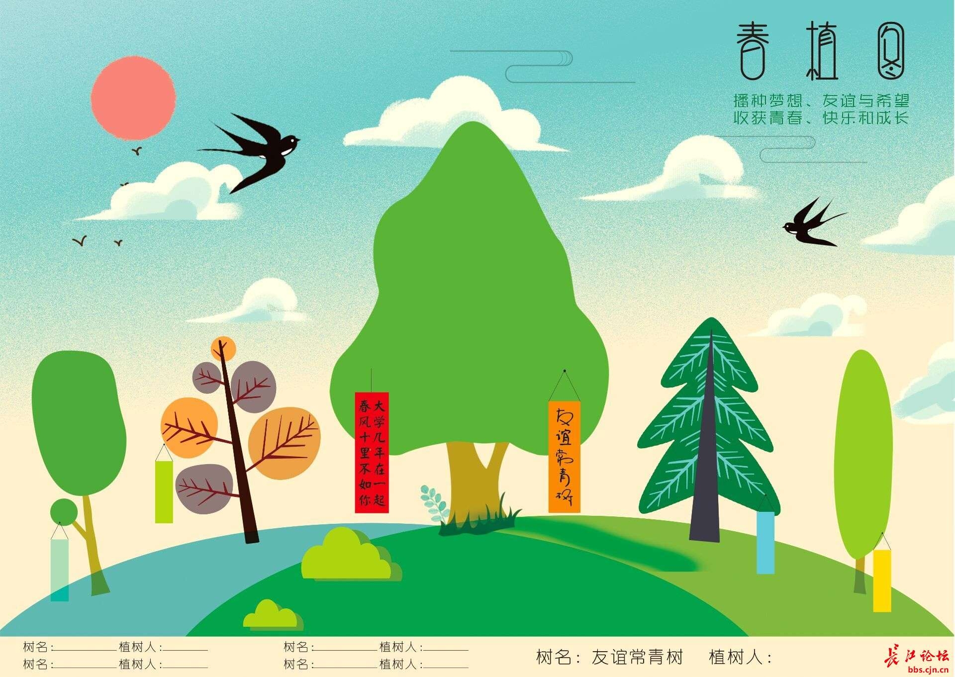 开学初,建筑工程学院辅导员吴凯在贯彻落实学校强化学风建设工作中,绘制了一幅幅“春植图”,每幅“春植图”上绘有一颗大树,挂有“大学几年在一起,春风十里不如你”绸带,名为“友谊长青树”,四颗未命名的小树苗均匀分布在两旁,寝室四人任选一棵为其命名。“又是一年新学期,春暖花开,正是‘植树’好时节,希望每个学生都有一颗自己专属的‘目标树’。”辅导员吴凯说,“一个寝室就是一个小家园,室友之间相互鼓励,共同督促,种好‘目标树’,呵护‘友谊树’。”